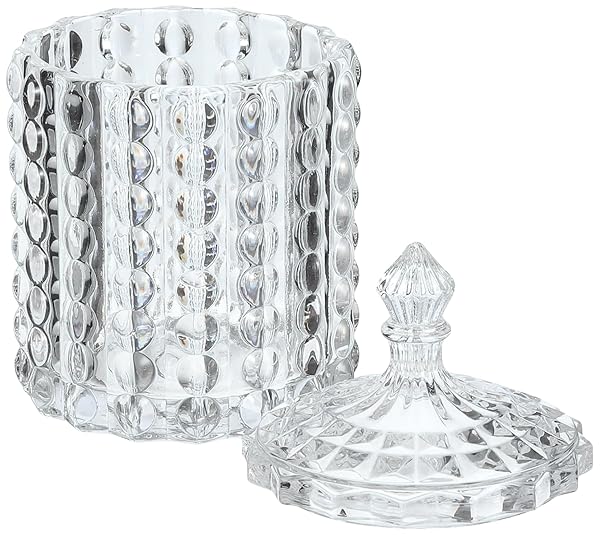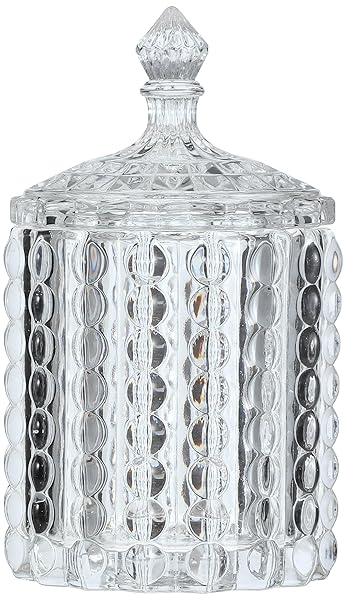 - RockTrend Home Decorative Butterfly Candy Jar Candy Dish Candy Buffet Storage Container Clear Crystal Diamond Faceted Jar with Crystal Lid-Large-16 OZ (Round, 16 OZ) offers reliable performance and quality- Material: Eco-friendly glass- Size: 5"D 7" H(include lid). Capacity: 16 OZ- Perfect for nuts,cookies, candy,fruits, soaps, bath salts or potpourri in the bath,even office supplies like paper clips and rubber bands