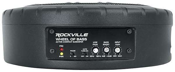 - Rockville Wheel of BASS 8" 500W Powered Car Subwoofer, 4 Ohm, Slim Cast Aluminum Design, Easy Install, Remote Bass Knob, for Trucks and Cars provides reliable performance and quality- SLIM DESIGN FITS ANYWHERE: At only 3.15" tall, this subwoofer slides under seats or fits in tight trunk spaces, delivering powerful bass without sacrificing room. Ideal for trucks, cars, or compact...
