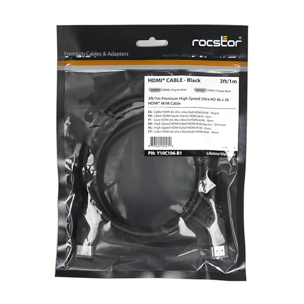- Rocstor Premium High Speed HDMI Cable with Ethernet (Y10C106-B1) offers reliable performance and quality- Conductors: 30AWG Copper- Version: Category 2 High Speed HDMI- Resolutions: up to 4Kx2K (Essentially 4x the Sharpness of 1080p)- High performance for daily use