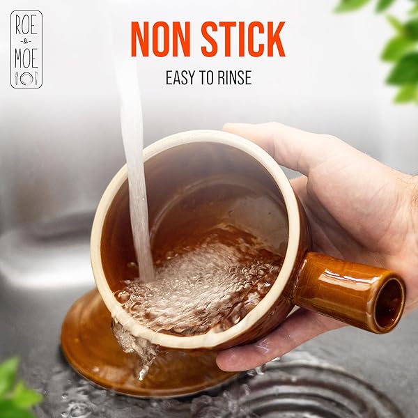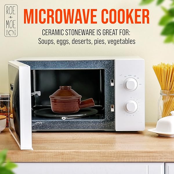 Roe and Moe Egg Cooker Non Stick Ceramic Microwave Poacher for Perfect Eggs and Soups with Dome Lid and Hollow Handle