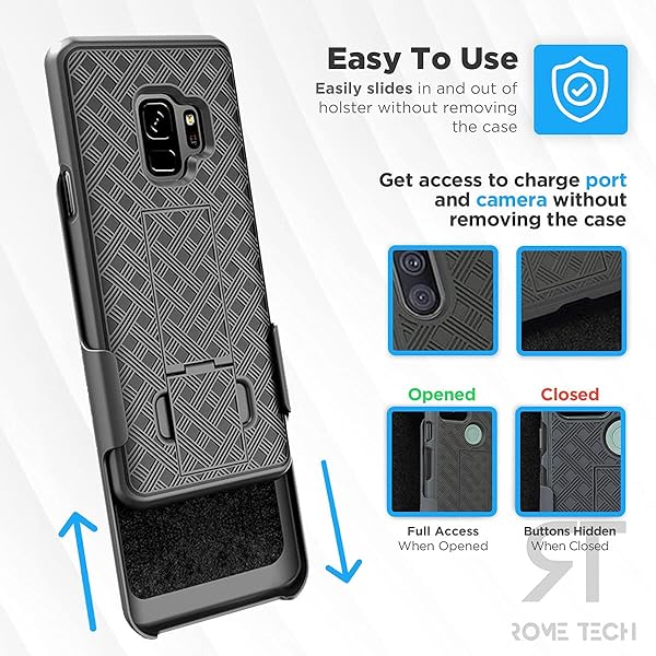 - Designed for Samsung Galaxy S9 Case with Belt Clip Holster - Kickstand Cover Phone Case - Black: reliable performance and quality- Perfect Fit, No Guesswork - Designed for Galaxy S9 case with clip- Fortified Protection - This rugged phone case for Galaxy S9 turns- Clip & Go - Stay hands-free with a holster case for Galaxy S9 built- Built-In Kickstand - The belt clip cases kickstand holder for Galaxy