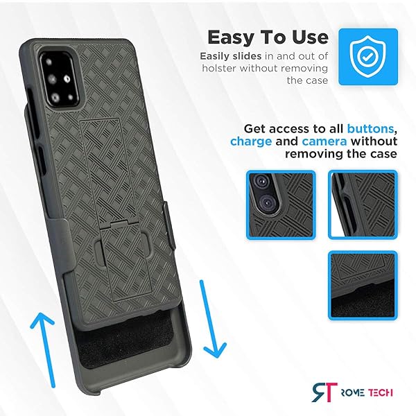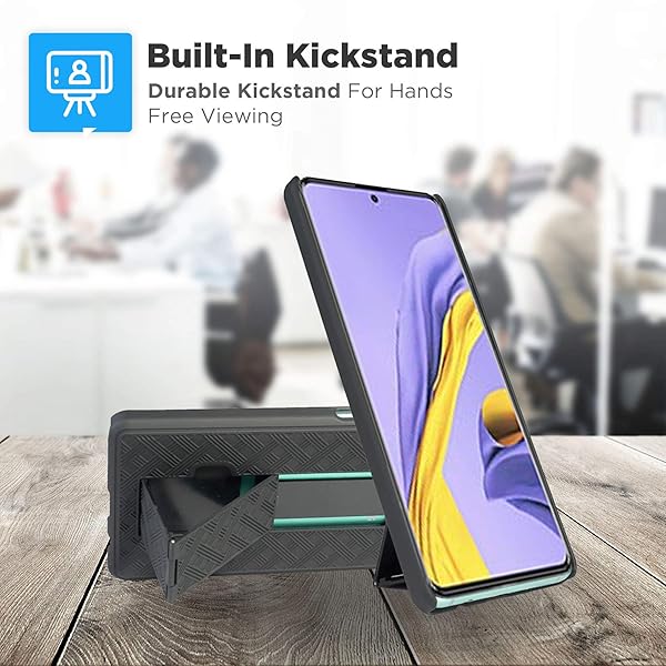 - Designed for Samsung Galaxy A51 5G Case with Belt Clip Holster - Kickstand Cover Phone Case - Black: reliable performance and quality- Perfect Fit, No Guesswork - Designed for Galaxy A51 5G case with clip- Fortified Protection - This rugged phone case for Galaxy A51 5G turns- Clip & Go - Stay hands-free with a holster case for Galaxy A51 5G- Built-In Kickstand - The belt clip cases kickstand holder for Galaxy