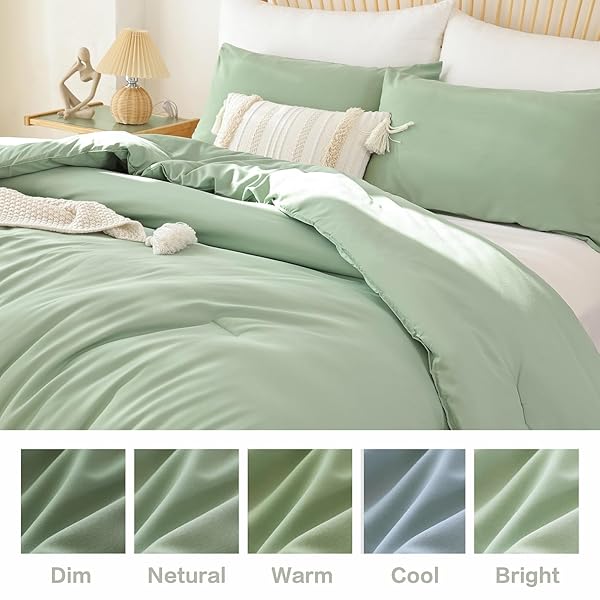- ROSGONIA California King Comforter Set Sage Green, 3pcs(1 Boho Cal King Comforter & 2 Pillowcases), All Season Lightweight Bedding Blanket Quilt offers reliable performance and quality- Soft Lightweight and Warm Sage Green Comforter Set California King: Soft and lightweight polyester material ensures a comfortable and cozy sleep. Warm breathable sage green cal king comforter set for colder nights without feeling too heavy or stuff