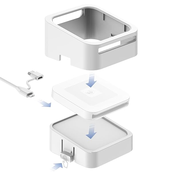 - Rounkin Credit Card Dock for Square Reader 1st and 2nd,Beautiful and Compact Case for Square Reader, Support Anti-Sleep Button, One Click to Turn On(Cable and Wall Charger Included, No Reader) White offers reliable performance and quality