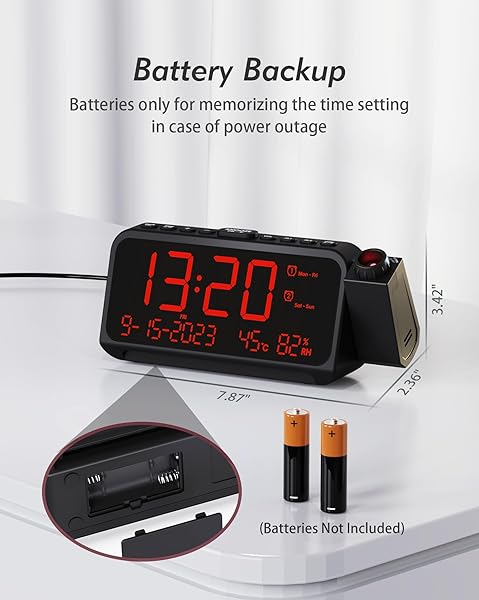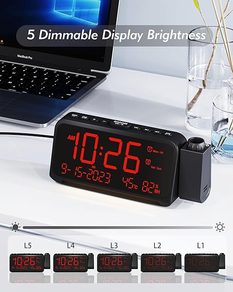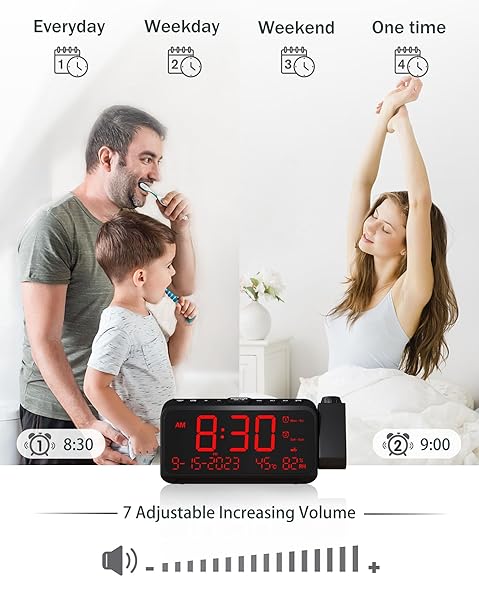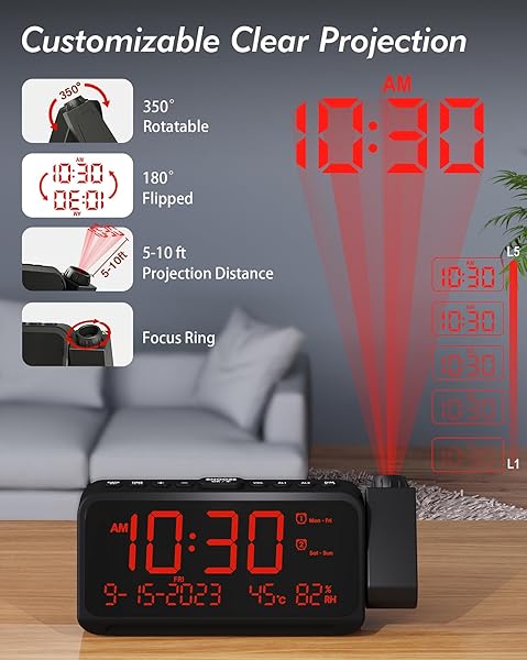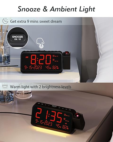- Roxicosly Projection Alarm Clock for Bedroom Ceiling, 118 dB Super Loud for Heavy Sleepers, 6.7" Large Digital Dimmable Display with Day Date Indoor Temp Humidity, Dual Alarms Adjustable Volume offers reliable performance and quality