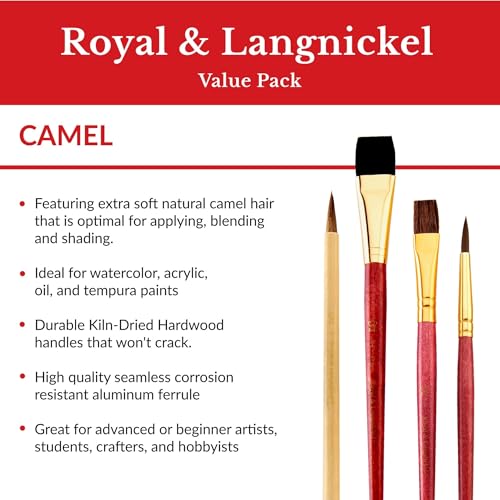 Royal Brush Camel Value Pack: 3-Piece Brush Set for Artists - Premium Quality & Versatile Use