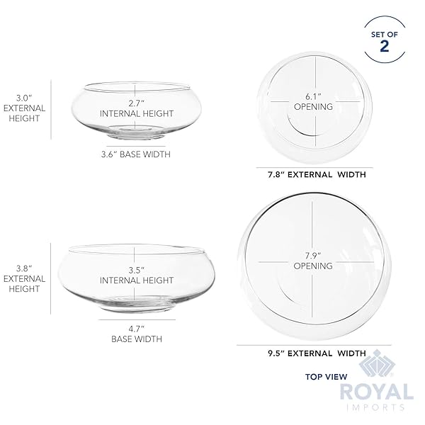 - Royal Imports Round Glass Vase Set of 2 Clear Decorative Glass Bowls for Flowers, Terrariums, Succulent Planters, Bubble Vases, Floral Decor Centerpieces, Glass Flower Pots for Home or Wedding Dcor offers reliable performance and quality- Elegant Glass Bowl Set Includes two round vases (7.5 & 9.5) made from durable, high-quality clear glass with a smooth finishperfect for floral arrangements, terrariums, or home accents
