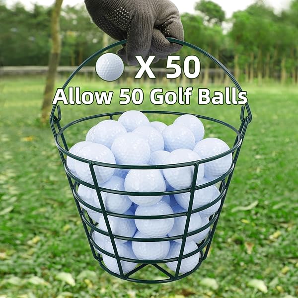 - Roykaw Golf Ball Basket Bucket Container for 50 Balls,with Handle,Built to Last/Easy to Organize with reliable performance and quality- Large Capacity-Allow 50 Balls: Roykaw golf ball basket can easily contain 50 regular golf balls.Attention: This package contains only one basket.- Built to Last: This golf ball bucket is constructed from sturdy metal material and covered in a green rust proof spray paint. Making this golf ball holder both beautiful and durable.- Comp