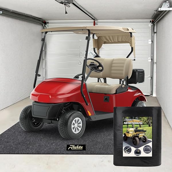 - Roykaw Golf Cart Parking Mat Garage Floor Mat Compatible with EZGO, Club Car, Yamaha, ATV, UTV and Small Utility Vehicles, Slide-Resistant, Petroleum Pollution Protection - 9.18 ft. x 4.92 ft. with reliable performance and quality- Universal Golf Cart MatRoykaw Golf Cart Parking Mat is designed for EZGO, Club Car, Yamaha, Advanced EV, ATV, UTV ,Go Kart and Small Utility Vehicles .- Heavy Duty MatLength: 109.4inch, width: 59inch. Thickness is 0.1inch, thicker than ordinary m