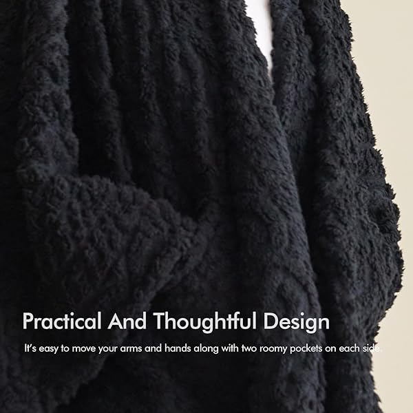 - Royoliving Fuzzy Sherpa Wearable Fleece Blanket with Pockets for Adults, Ultra Soft Plush Shawl Throw Blankets (Black, 58'' x 64'') offers reliable performance and quality- --- This Wearable Blanket is available in various colors and the size is 58" x 64" which is big enough to fit most people and help you stay soft, snug and cozy. And the color is nice and dark, so you don't have to worry as much about the blanket getting dirty