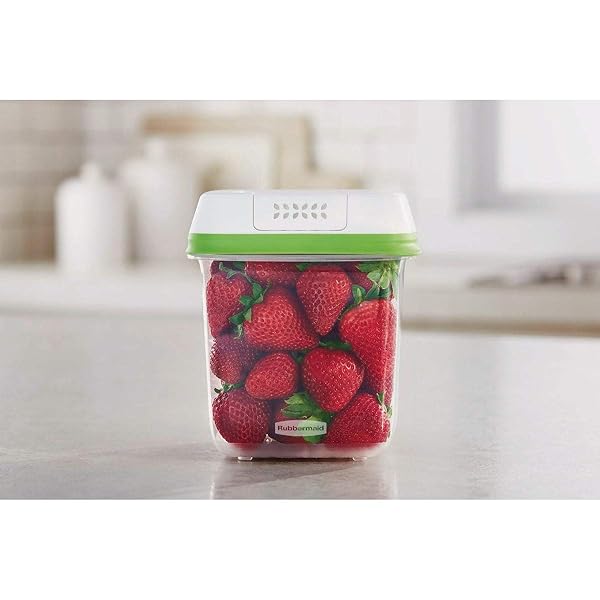 * Rubbermaid FreshWorks Saver, Medium Produce Storage Container, 7.2-Cup, Clear: rubbermaid freshworks produce saver keeps produce fresher longer * The FreshVent technology filter naturally regulates the flow of oxygen and carbon dioxide to to create the optimal environment for your fresh produce * The filter lasts the lifetime of the container * With no refills needed * The elevated base lifts produce away from moisture and promotes proper airflow to prevent spoilage