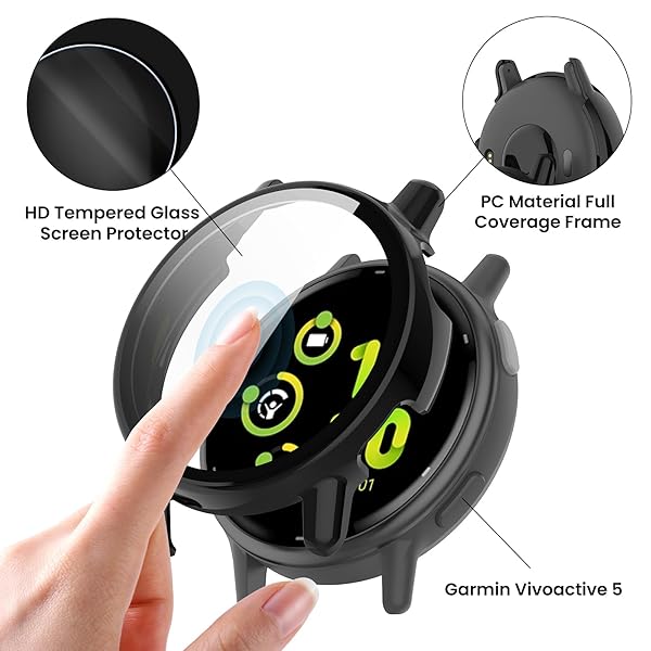 - Compatible with Garmin Vivoactive 5 Watch Case Cover, Replacement PC Protective Case Full Cover Built-in HD Tempered Glass Screen Protector for Garmin Vivoactive 5 Smart Watch (Black&Clear) with reliable performance and quality- Unique Design Special Designed case cover for Garmin Vivoactive 5, easy access to all functions without having to remove the band.- All-Around protectionPC material covers your Vivoactive 5 screen and edges perfectly. Electroplate frame, well-polish