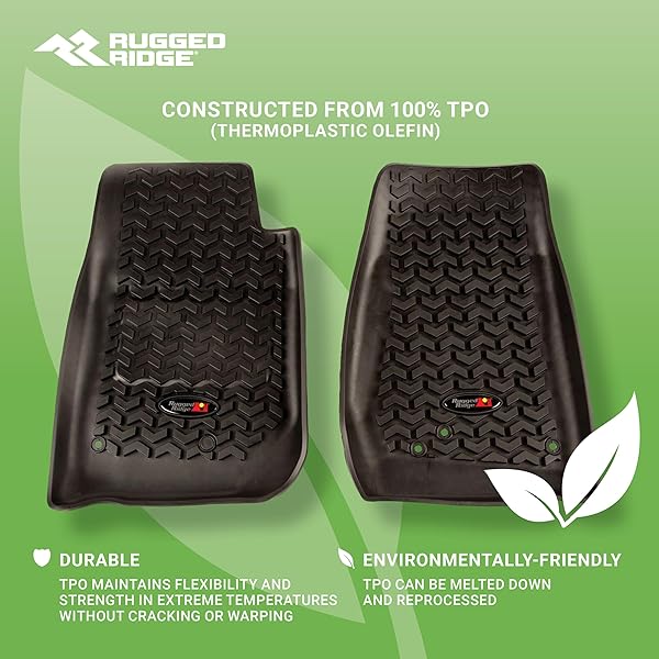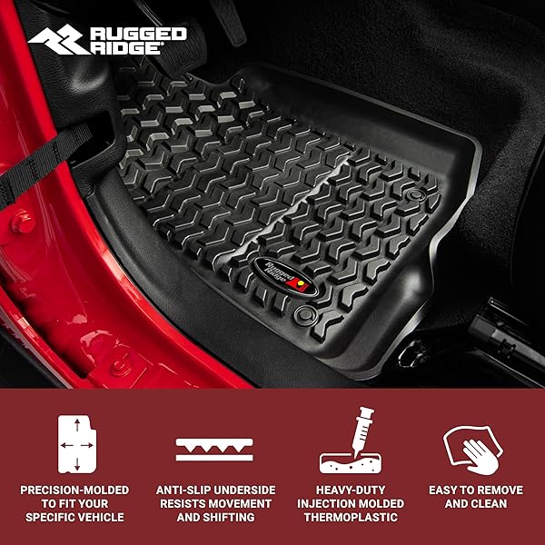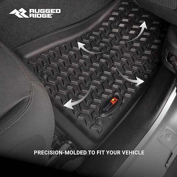 - Rugged Ridge Front Floor Liners for Jeep Wrangler JK/JKU | Black | 12920.02 | Fits 2007-2018 Jeep Wrangler JK/JKU 2-Door and 4-Door Right Hand Driver offers reliable performance and quality- HEAVY DUTY FLOOR MATS: Deep rib floor mat set features a molded chevron-shape tread pattern that captures dirt, mud & snow. Floor mats reseal themselves to the floor hook attachment where applicable