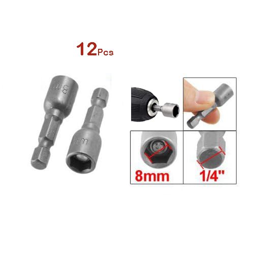- RUIAN 12-Piece Hex Magnetic Power 8mm 5/16 Socket Adapter 1/4 inch Drill Bit Nuts Driver Set for Electrician Tools offers reliable performance and quality- Hex Socket Size : 8mm/ 5/16"; Hex Shank Size : 6.35mm/ 1/4"- Material : Chrome-Vanadium,long life and good durability for operating- Overall Size : 12 x 41mm/ 0.47 x 1.6" (DL)- Color : Gray ;Weight : 167g