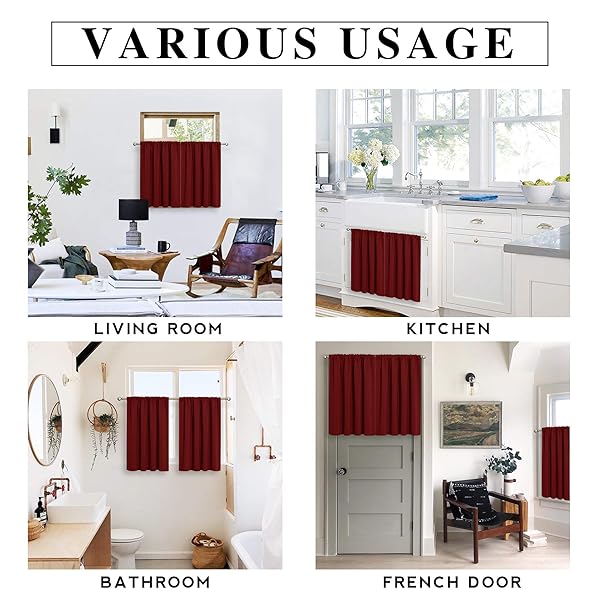 - RYB HOME Blackout Curtains for Half Window Kitchen, Thermal Insulated Curtain Panels for Bedroom/Living Room, 42 x 36 inches Each Panel, Burgundy Red, 2 Panels offers reliable performance and quality- WELL MADE - Sold as 2 panels. Each Panel measures 42" wide x 36" long with 3" rod pocket top, which fits most of the rods. Both sides are the same color