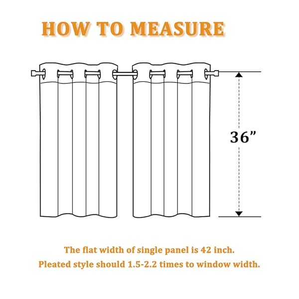 - RYB HOME Grey Blackout Curtain Tiers for Small Window, Thermal Insulated Curtains Short Blind for Kitchen/Living Room Energy Efficient, 42-inch Wide x 36-inch Long Each Panel, Grey, Set of 2 offers reliable performance and quality- Well Made: 2 panels measure 84" wide by 36" long with rust proof grommets top, feature 1.6-inch inner diameter round grommets for easy hanging and use on rods. Both sides are the same color