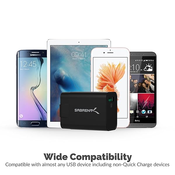- SABRENT Quick Charge 3.0 USB Wall Charger [18W 5V 2.4A QC 3.0] (AX-QCP1) offers reliable performance and quality- A foldable plug, compact size and voltage compatibility (AC 100-240V) make it the ideal travel companion- Compatible with almost any USB device. Backward-Compatible: Also works with Quick Charge 2.0 and adaptively charges all standard USB-powered devices (including Android and Apple) at up to 2.4A- Quick charge 4x faster than standard chargers
