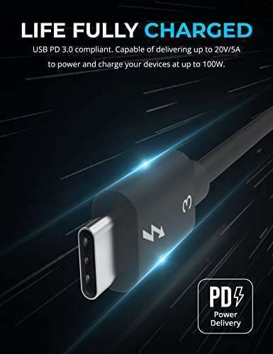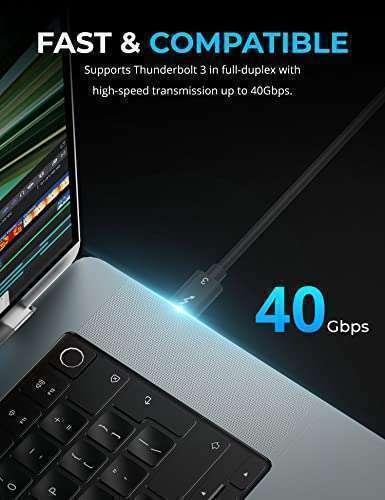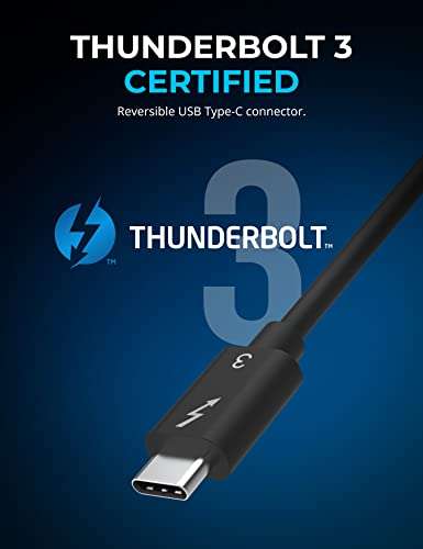 - SABRENT Thunderbolt 3 USB-C Cable [Certified] 7.8" (20cm) | 40 Gbps | 100W Charging | E Mark Chip | for MacBook, Laptops, Docks [CB-T320] provides reliable performance and quality- Thunderbolt 3 Certified. Reversible USB Type-C connector.- Power delivery capacity of 5A at 20 volts for a total of 100 watts.- Up to 40 Gbps transfer speed. Passive cable with E-Marker chip.