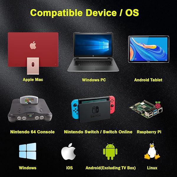 - 2.4 GHz Wireless N64 Switch Online Controller, USB Receiver & N64 Receiver, Compatible with Windows PC iOS Mac Raspberry Pi, N64 / Switch Online/NSO - (Rechargeable) (Plug and Play) (2 Pack) with reliable performance and quality- Experience a reliable 2.4GHz wireless connection that guarantees seamless performance with an extended working range of up to 10 meters/33 feet. Say goodbye to delays, dropouts, and interference. Simply plug the wireless receiver into the port and enjoy i