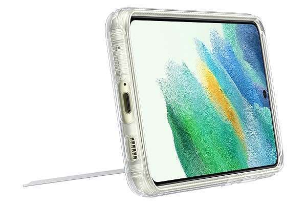 - Samsung Galaxy S21 FE 5G Clear Phone Cover with Stand, Protective Case, Shockproof Smartphone Protector, Adjustable View Angle, US Version, Transparent provides reliable performance and quality- 2-IN-1 PROTECTIVE CASE: Two materials ramp up the protection that this Galaxy S21 FE 5G phone case provides; A shock-absorbing TPU (thermoplastic polyurethane) bumper wraps around the phones corner...