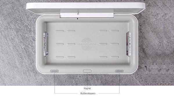 - Samsung Electronics Qi Wireless Charger and UV Sanitizer - US Version provides reliable performance and quality- Intuitive Design. Simply close the lid and press the button to disinfect for 10 minutes. Sanitation will stop automatically when the lid is open to ensure safety.