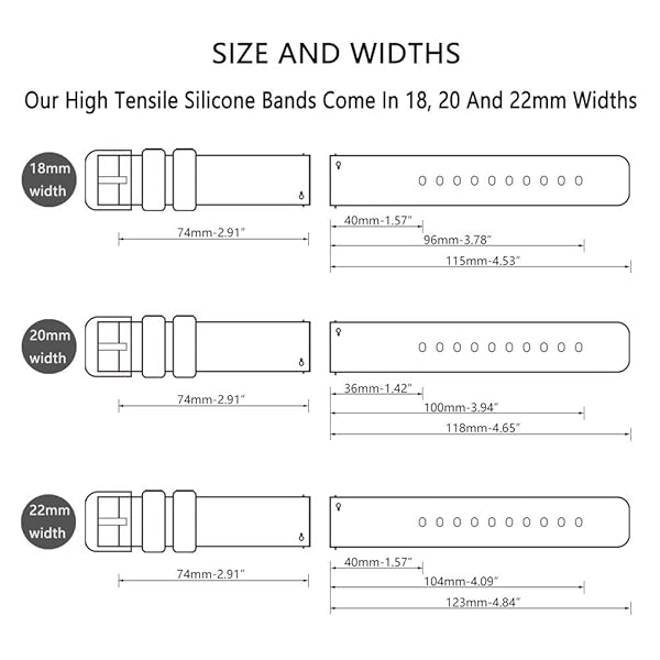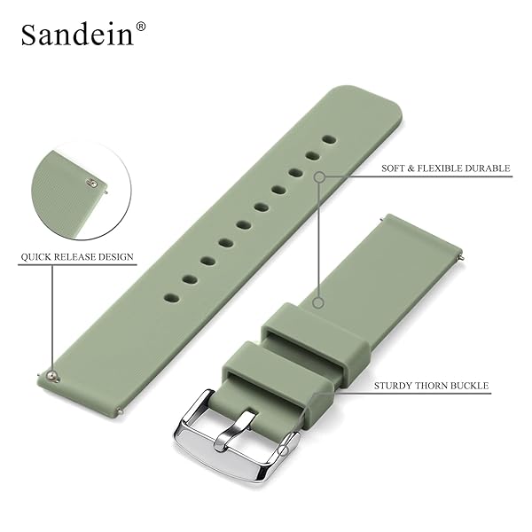 - SANDEIN Watch Bands - Silicone Quick Release Soft Rubber Replacement Watch Strap for Men and Women, Fits Watch Lugs of 18mm, 20mm and 22mm (choose the proper size) with reliable performance and quality- Choose the right size: Our bands with three width options, Compatible with most traditional watches and smart watches, if the width between the inner sides of the lugs of the watch is 20mm, please select 20mm, which does not match with 19mm or 21mm, you can measure the distance bet