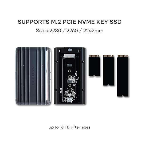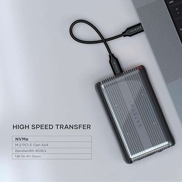 - Satechi M.2 Enclosure, USB4 NVMe SSD Pro Enclosure, 40Gbps, up to 16TB, Aluminum Enclosure with Silicone Pin, Polycarbonate Casing, USAP SSD Trim for Sizes 2280/2260/2242/2230mm (SSD Not Included) ...- High-Speed Data Transfers - Experience lightning-fast data transfers with our external NVMe enclosure, supporting PCI-E Gen 4x4 with read/write speeds up to 3840MB and a blazing transfer rate of 40...