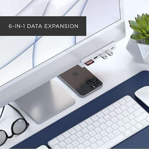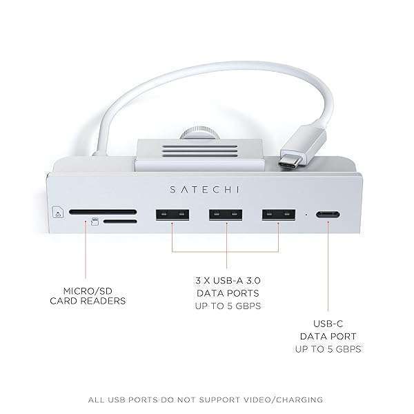 - Satechi USB C Hub iMac USB Adapter USB C Data Port, USB-A 3.0 Data, Micro/SD Card Readers, USB C Clamp Hub For Apple Studio Display & iMac 24-inch, Does Not Fit 2020 iMac & Earlier Models - Silve...- Tailored for 24-Inch iMac - Exclusively crafted for 2021 iMac (24-inch) models, this docking station extends your USB ports, facilitating fast data transfer and seamless access to peripherals. Enjo...