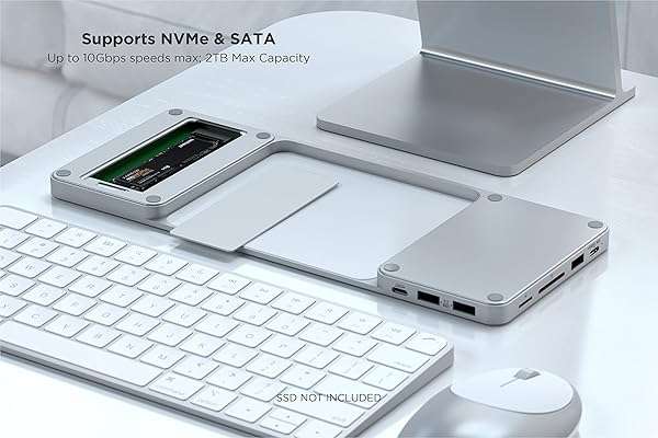 - Satechi USB C Slim Dock for 24 iMac with Tool-Free Enclosure for M.2 PCIe NVMe and SATA SSDs, USB C Data Port, USB A, 2 USB 2.0, Micro/SD Card Reader - Silver provides reliable performance and quality- Designed for 24-inch iMac - Exclusively designed for iMac 24-inch models to add extra data storage space, extend your USB ports for fast data transfer and access to peripherals all with a plug and...