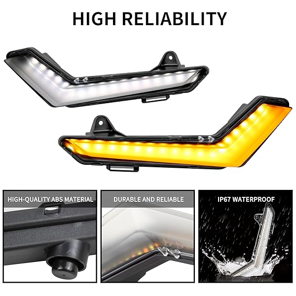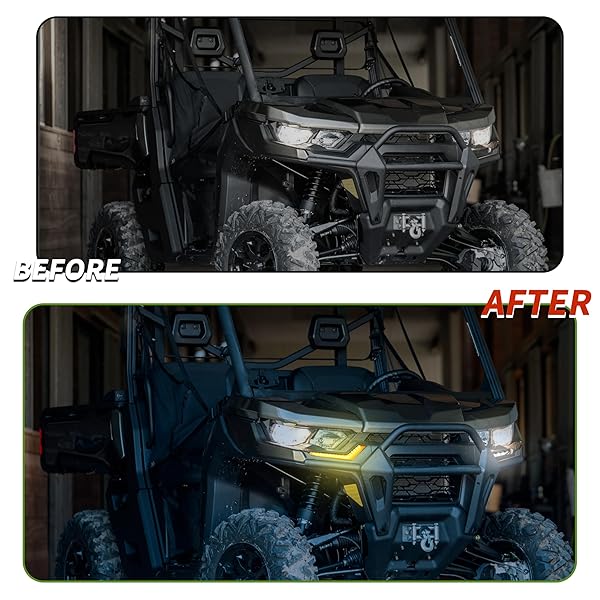 * SAUTVS LED Turn Signal Fang Lights DRL Daytime Running Lights with White Yellow Light for Can Am Defender & Defender Max 2020+ / Commander & Commander Max 2021+ Accessories(2PCS): compatible with can-am defender 2020+ / defender max 2020+ / commander 2021+ / commander max 2021+ * Replace# 715006896 (Please refer to the compatible list in description) * Customize the look of your Defender to make it stand out * Help light up the trail at dusk and night * Escort your driving trip