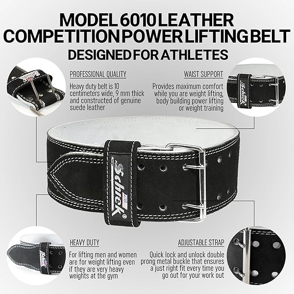 Schiek Sports Model 6010 Leather Power Lifting Belt - Ultimate Competition Gear for Strength Training
