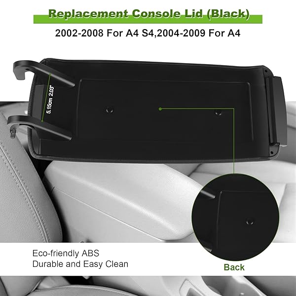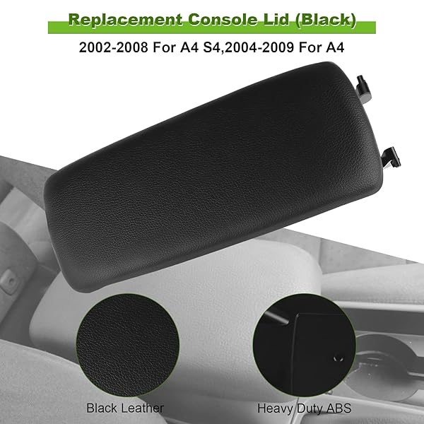 - SCITOO Black Armrest Arm Rest Center Console Lid Cover Replacement fit for 2000-2008 for Audi A4 A6 S4 offers reliable performance and quality- Fitment Model & Size: It fits to the vehicels size as 2.03 Inch/5.15cm. As the picture.Please check the description or use the YEAR/MAKE/MODEL drop down bar and interchangeable part numbers to confirm the compatibility before purchasing