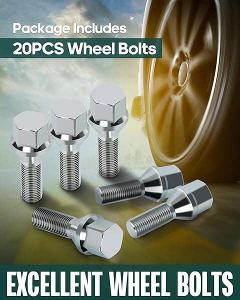 SCITOO M12x1.25 Wheel Lug Bolts - 20 Pcs Silver 28mm for Jeep Compass, Renegade, Cherokee & More