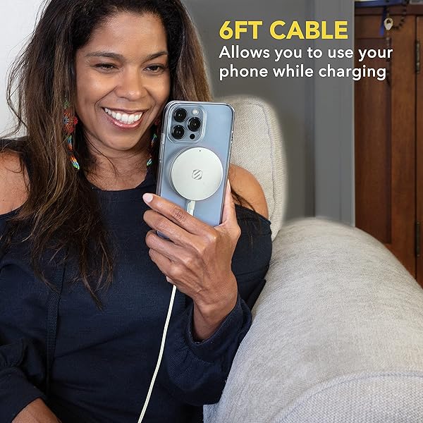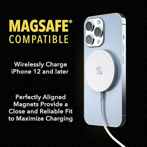 - Scosche MSQPWT Magnetic Wireless Phone Charger, MagSafe Compatible Fast Charging Pad for iPhone 12, 13 and 14, Airpods, Earbuds with Wireless Charging Cases, & other Wireless Charging Devices, White with reliable performance and quality- Wirelessly charges MagSafe-equipped iPhone 12 and later models at up to 7.5W.- Extra convenient attached extra long 6 ft. USB-C cable gives you more reach and lets you easily use your phone while its charging.- Perfectly aligned magn