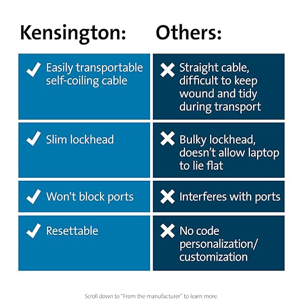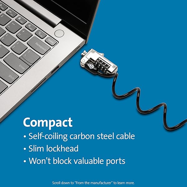 * Kensington Slim NanoSaver Portable Combination Lock for Nano Slot (K60627WW): ideal for thin laptops * The Slim NanoSaver Portable Combination Lock allows the laptop to lie flat and stable * And wont block valuable ports * Self-coiling carbon steel cable sheathed in plastic stretches up to six feet and shrinks down to three inches * For easy portability