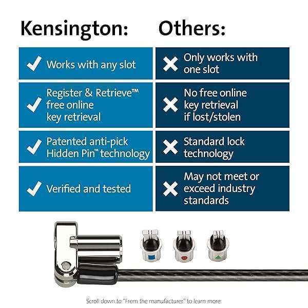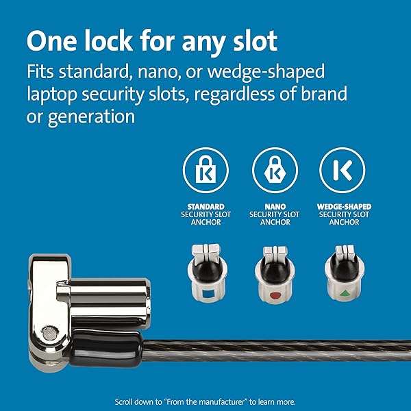- Kensington Universal 3-in-1 Keyed Laptop Locking Cable, Computer Security Keyed Lock, T-bar, Nano, Wedged-shaped (K62318WW) provides reliable performance and quality- One lock for any slot fits standard, nano, or wedge-shaped laptop security slots, regardless of brand or generation, helping to future-proof your locking solution. Lock tips are easily changed; a ...