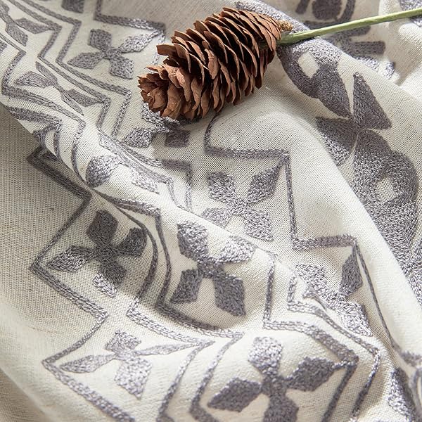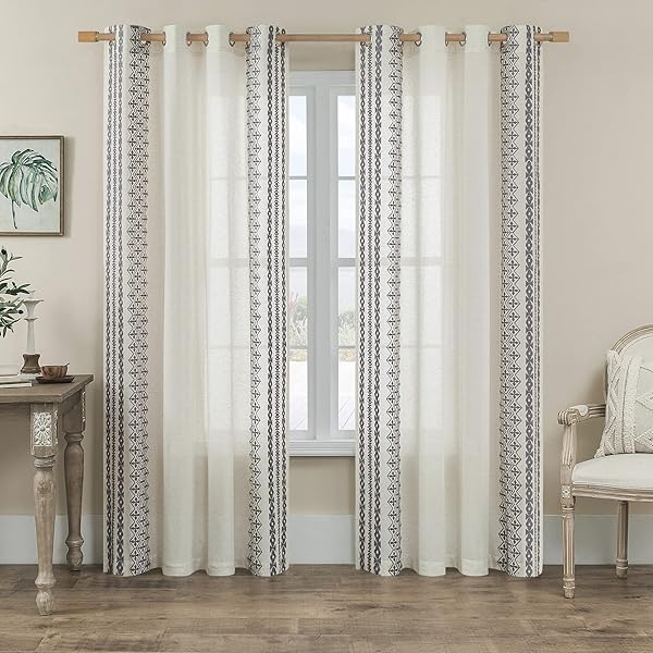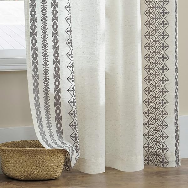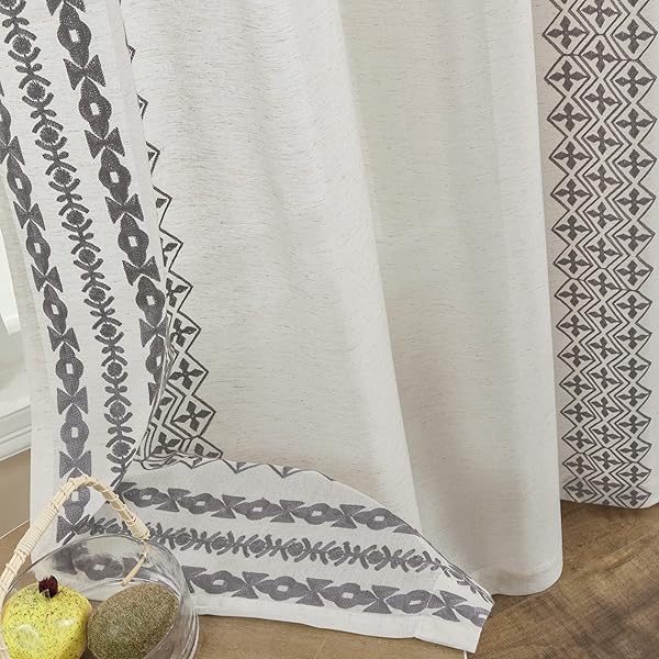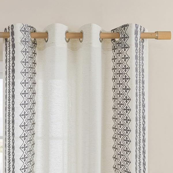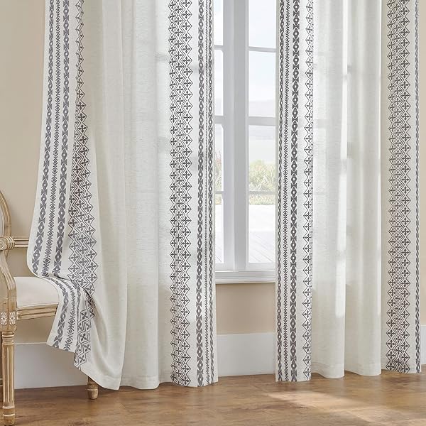 * SEEKRIGHT Grey Boho Curtains 72 Inch Length for Living Room Grommet Semi Sheer Linen Curtains Striped Embroidered Window Curtains Privacy Bohemian Drapes Farmhouse Bedroom Decor, 52x72 Inches Long: package: include grey boho curtains 72 inch length 2 panels * Each panel has 8 grommets and inner diameter is 1.6 inch * Easy to hang * And slide smoothly * Linen Fabric & Boho Feel: Crafted from 20% linen and 80% polyester fabric