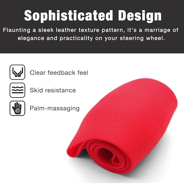 * SEGADEN Leather Texture Soft Silicone Car Steering Wheel Cover Universal Anti-Slip Design 14-16 inch Protective Case Red: high quality food level and eco friendly silicone * Odorless and no toxic * Leather texture pattern design * Feedback feel clear * Skid resistence and massage your palm to relieve drive fatigue