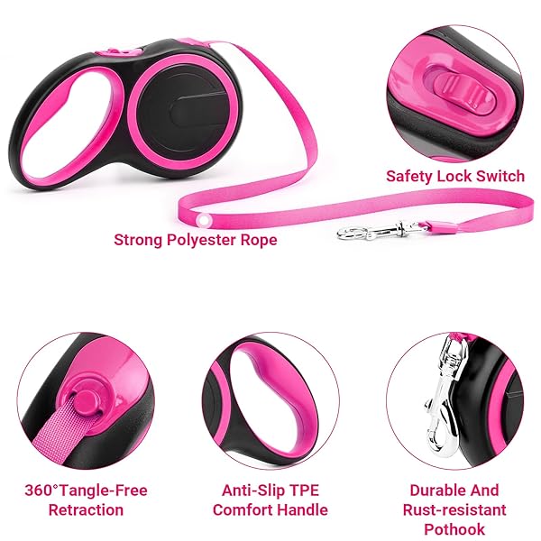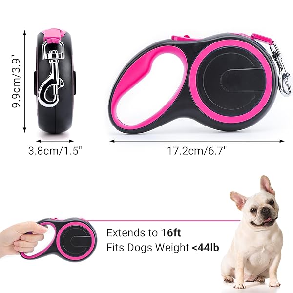 - Segarty Pink Retractable Dog Leash, 16ft Heavy Duty Walking Dog Leash for Medium Small Dogs up to 44lb, Anti-Slip Handle 360Tangle-Free Nylon Tape, One-Handed One Button Lock and Release with reliable performance and quality- What You Will Receive: You'll receive a stylish and functional walking solution-- 16 ft pink dog leash retractable which is designed specifically for small and medium dogs up to 44lbs. Made from high-quality materials, this leash is built to last and provide
