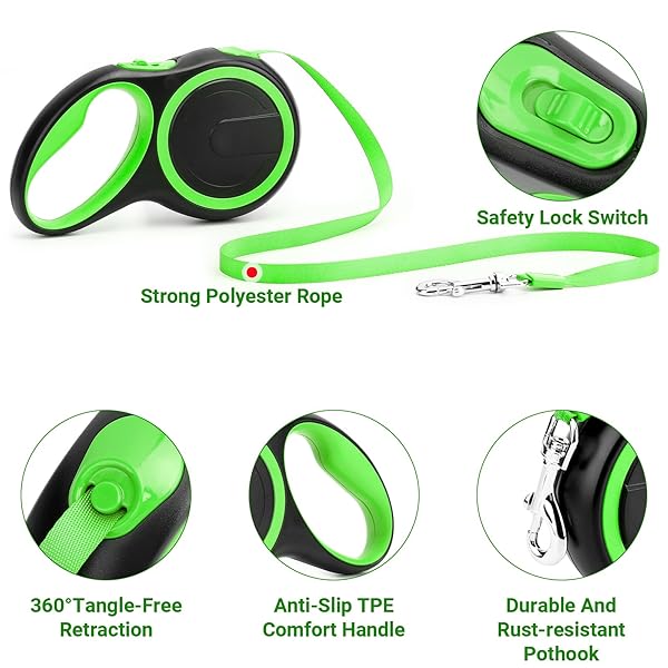 - Segarty Extendable Dog Leash, 16ft Heavy Duty Walking Dog Leash for Medium Small Dogs up to 44lb, Anti-Slip Handle 360Tangle-Free Nylon Tape, One-Handed One Button Lock and Release (Green) with reliable performance and quality- What You Will Receive: You'll receive a stylish and functional walking solution-- 16 ft green dog leash retractable which is designed specifically for small and medium dogs up to 44lbs. Made from high-quality materials, this leash is built to last and provi