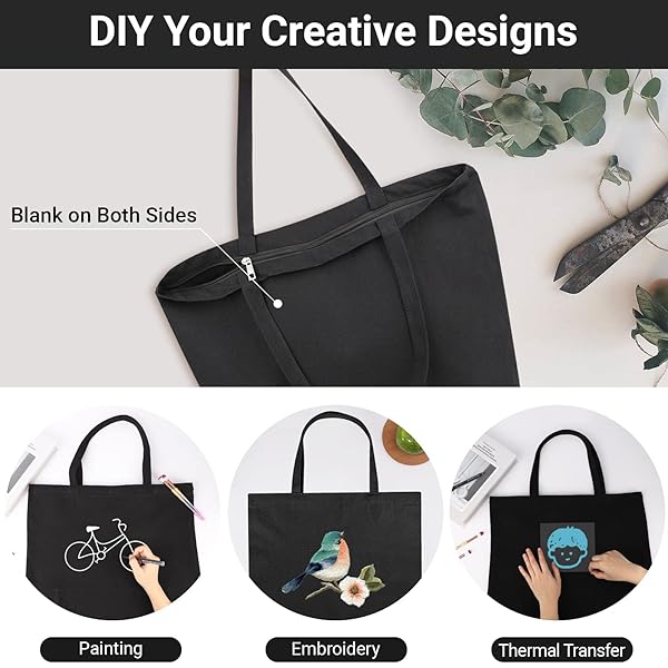 - Segarty Canvas Tote, 3 Pack 20x15.7 Black Canvas Shopping Bags for Women, Reusable Natural Cotton Bag Aesthetic with Shoulder Strap, Bulk for DIY, Grocery Shopping, Beach, TravelGift with reliable performance and quality- Perfect for Crafting: These canvas tote bags with zipper are the perfect canvas for crafting. Whether you're into painting, embroidery, or screen printing, these bags offer a blank canvas to showcase your creativity. The black color provides the perfect backgroun