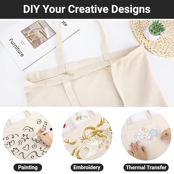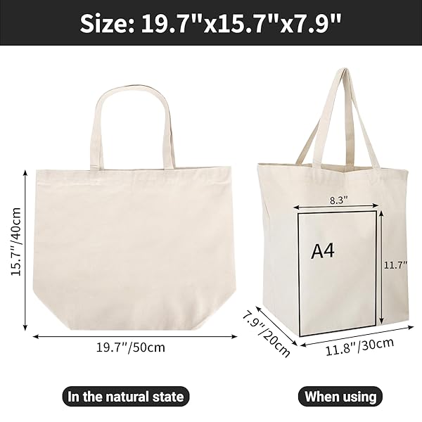 - Segarty Blank Tote Canvas Bag with Zipper, 3pcs 19.7x15.7 inch Bags with Handles, 12oz Heavy Duty Reusable Washable Grocery Shopping Bags Plain Bags for Teacher DIY Art Craft Paint Embroidery offers reliable performance and quality- Upgraded Large Bag -- size: 19.7''*7.9''*15.7'' (L*W*H). 7.9'' widened bottom gusset plus 12oz thick canvas fabric, Segarty tote bag can hold all your stuff without being too oversized