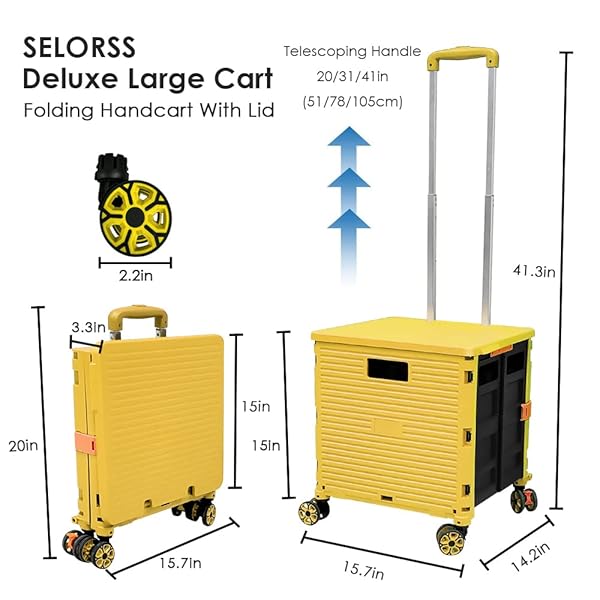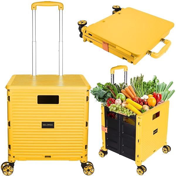 - SELORSS Foldable Utility Cart Portable Collapsible Crate Rolling Carts with Wheels Rolling Tote Basket Teacher Cart with Lid Wear-Resistant 360Rotate Wheel Noiseless for Shopping Storage Office Use: reliable performance and quality- [High Quality Material]: This shopping cart with- [Smart and Simple]: The folding shopping cart with- [Extra Strong Loading & Users Best Friend]: This- [Instant Use]: Skip the complicated installation, the