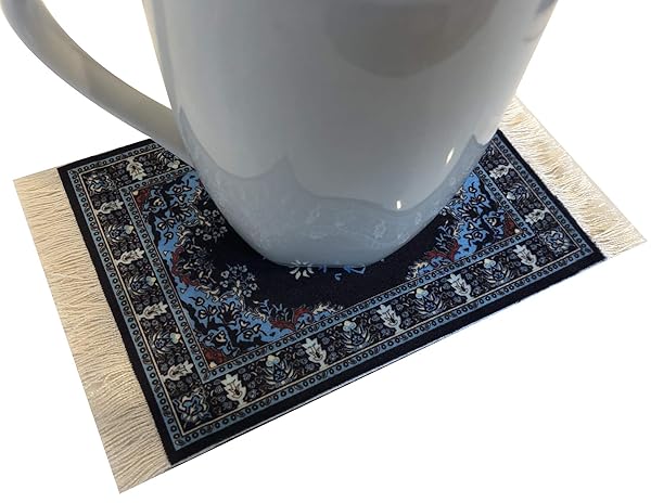 - Carpet Coasters, Set of 4 Turkish Rug Style Table Drink mats, Absorbent Kitchen and Dining Accessories, Spill & drip Protection, Rectangular offers reliable performance and quality- FUNCTION MEETS STYLE. Take your tabletop decor on a flying magic carpet ride with our SET OF 4 CUP COASTERS! Our carpet coasters are mini versions of authentic Oriental rugs and are completed with real white fringes on the sides to complement your table setting!