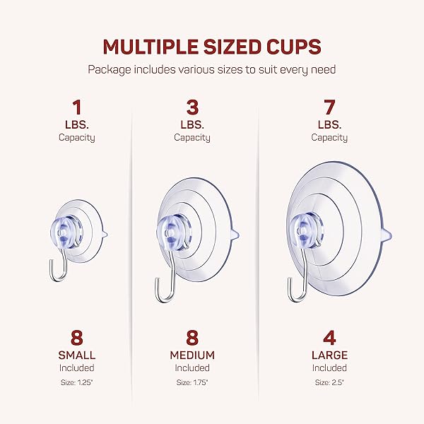 * SEWANTA All-Purpose Suction Cup Hooks [10PK Combo Set] Powerful Window Suction Cups with Hooks Use to Hang On Glass, Windows, Doors, Mirrors, Tiles. Set Includes: 2 Large, 4 Medium, 4 Small: suction cup combo pack 10-pack clear suction cups with heavy-duty rustproof metal hooks for hanging household items on smooth surfaces * Includes 2 large * 4 medium * And 4 small suction cups with hooks * MULTIUSE