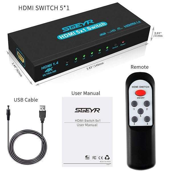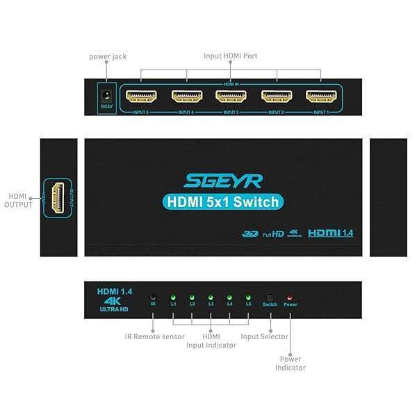 - HDMI Switch SGEYR 5x1 HDMI Switcher 5 in 1 Out HDMI Selector 5 Port Box with IR Remote Control HDMI 1.4 HDCP 1.4 Support 4K@30Hz Ultra HD 3D 2160P 1080P offers reliable performance and quality