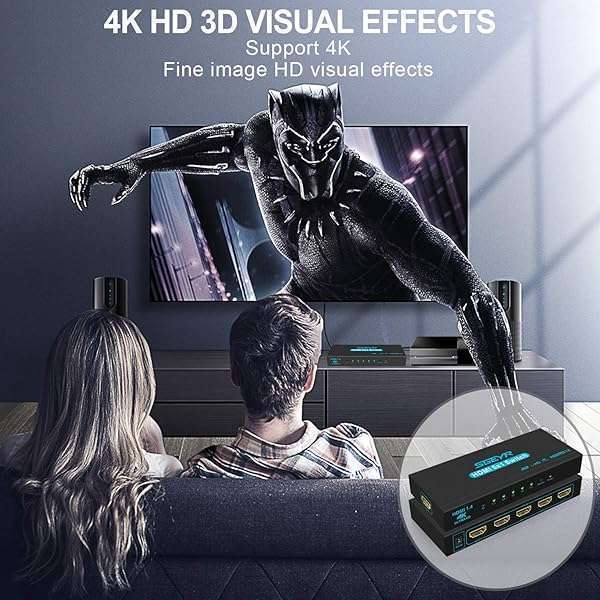 SGEYR 5x1 HDMI Switcher: 5 Port Selector with IR Remote, 4K@30Hz Ultra HD, 3D Support - Perfect for Home Theater!