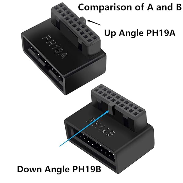 * SHANFEILU USB 3.0 90 Degree Motherboard Adapter 19 Pin/20 Pin Male to Female Extension Adapter L Turn Right Angle Socket for Desktop Motherboard (Down Angle PH19B): good solution:this 90-degree l-turn down angle (ph19b) adapter provids a convenient solution for changing the installing direction of usb 3.0 20 pin/19 pin cables.by allowing the usb 3.0 20 pin/19 pin cable to be installed at a 90 degree angle * You are no longer need to wrap or fold the cable Down and back over the motherboard and