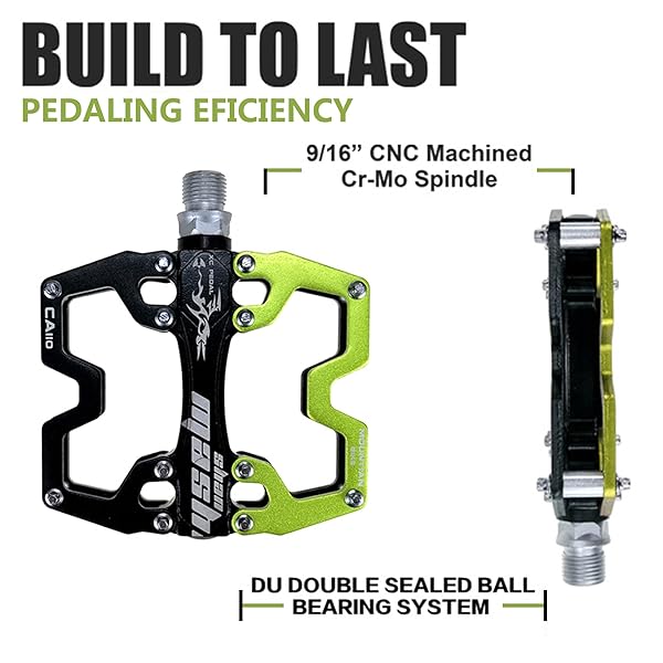 "Shanmashi CA110 Black Green MTB Pedals - Ultra-Light Aluminum 9/16" Flat Bicycle Pedals for Adults"