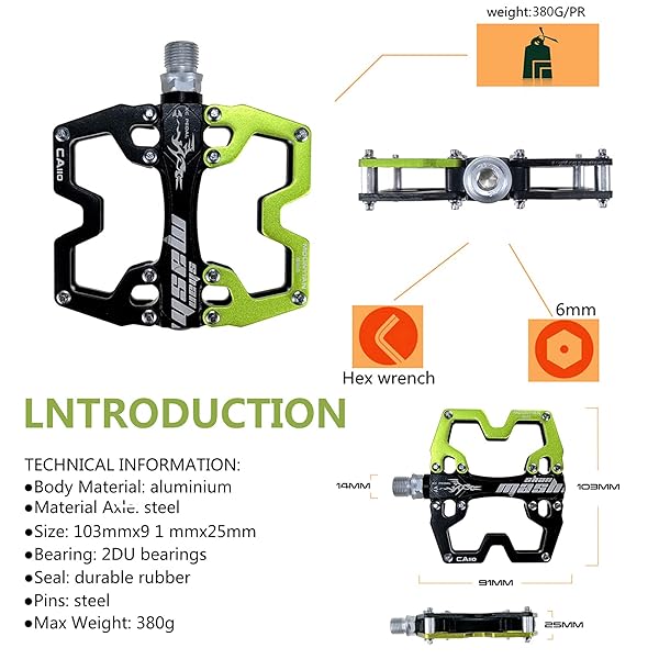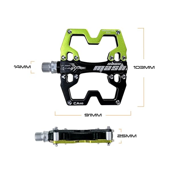 * shanmashi CA110 Black Green Mountain MTB Bike Pedals 9/16 Inch Road Bicycle Parallel Pedal Ultra-Light Aluminum Alloy Bearing Cycling Flat BMX Pedal Adult: material: the bicycle pedal is made of cnc integrated aluminum alloy material * Which is impact-resistant * Wear-resistant and corrosion-resistant * Scope of application: mountain bikes * Hybrid vehicles